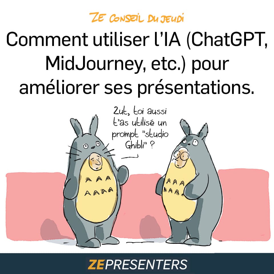 Mais le véritable danger n’est pas que l’IA soit imparfaite. Le danger, c’est de lui laisser prendre la place du narrateur. L’IA ne doit pas devenir l’auteur de votre discours. Elle doit rester un copilote discret, efficace, au service de votre vision. Voici donc quelques conseils pour apprendre à utiliser l’IA (ChatGPT, MidJourney, etc.) afin d’améliorer vos présentations.